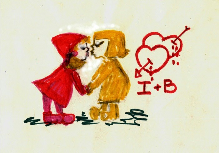 the little red-hooded girl in the forest is swallowed by the wolf, and so is her grandmother;