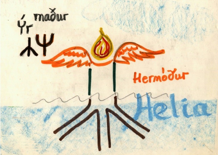 Hermóður (Óðinn, consciousness) goes to Helia /Hel, to collect and re-gain, or resurrect, Baldur hinn góði (sun-god Baldur the good,–the light of life–)