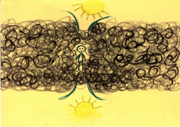 Þjóðvitnir (left) brings the lure of matter, “the mistake of our intellect”, which is taking material (red stuff) as something stable and real;