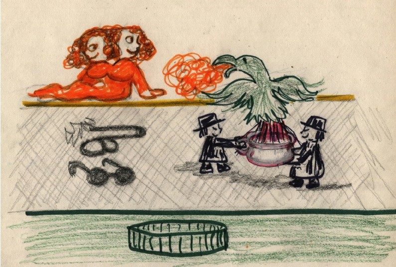 below the green line: animals, paradisos, — and the animal stage is carried into human life;