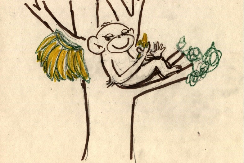 the monkey jumps form tree to tree to find bananas, — and when he finds a bunch of them, he is contented, stops running, and enjoys;