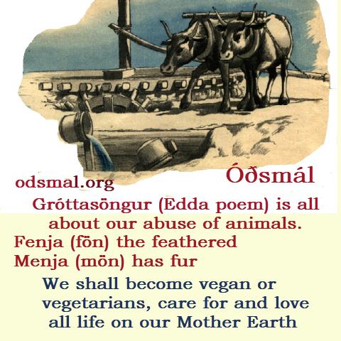 We have a human brain, we should understand, and we should revere and protect all life on earth. Each creature is on its evolutionary path, even if they do not possess a human nervous system. He who eats killed animals partakes in the sin of killing, he who gains from suffering is responsible for suffering. That does not yield a good Skuld (–see Urður Verðandi Skuld--).