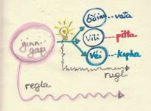 on my drawing: rugl means disorder and nonsense, regla means orderliness and rule. Reglan comes from ginnungagap, the perfection, ruglið from that universe-outcome.